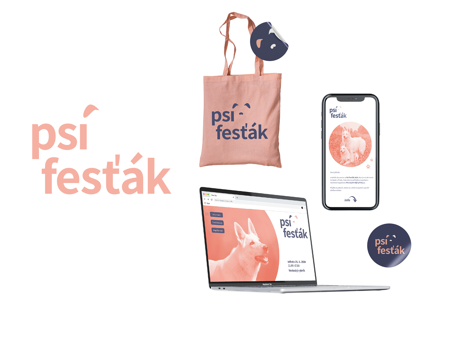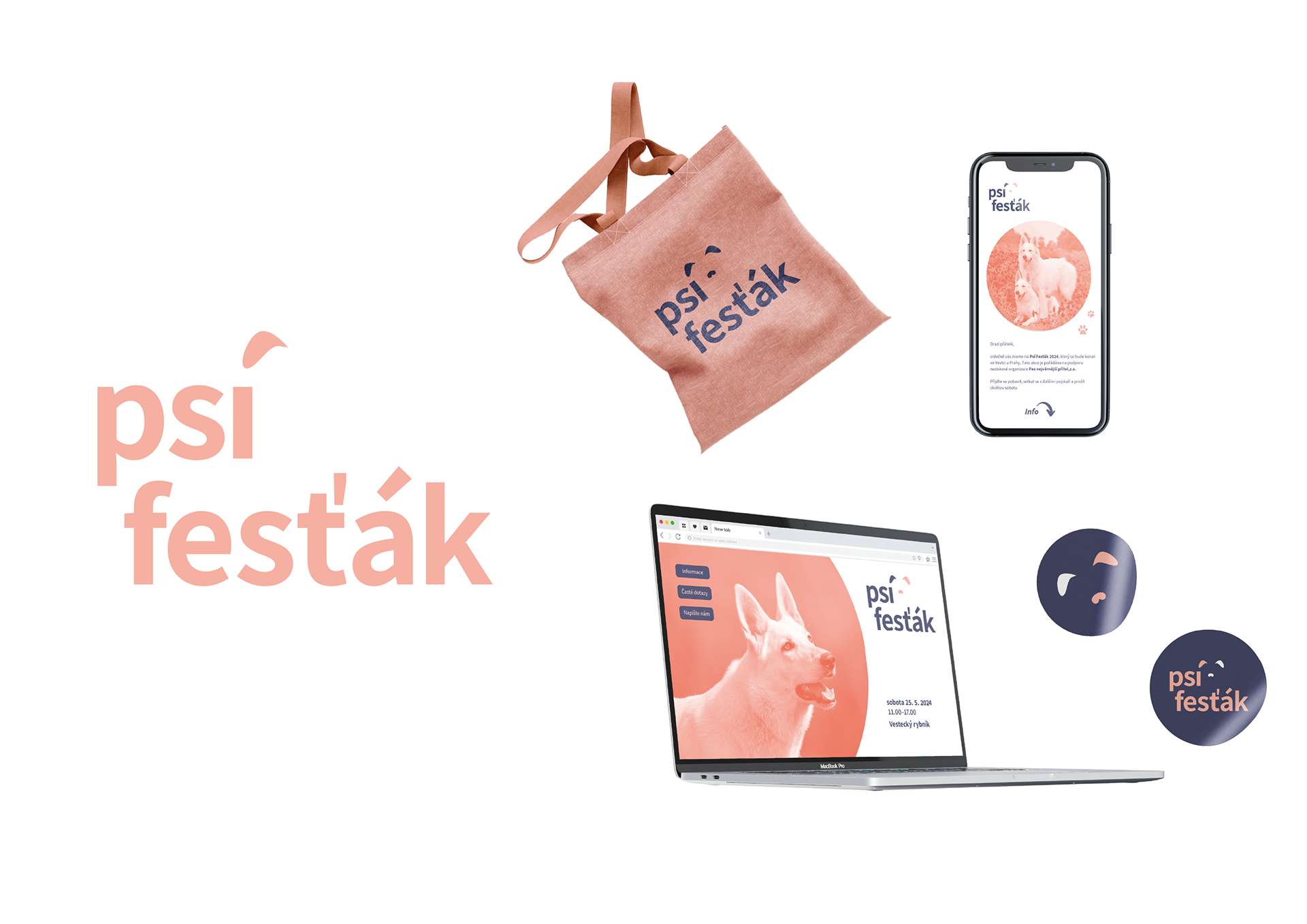 The visual was created for the non-profit event Psí fesťák, whose first edition took place in Prague in 2024. The aim was to design a simple and easily memorable logo that reflects the cheerful character of the event. This led to a combination of grotesque typography